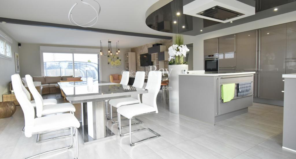 - Cuisine-séjour 43 m² tomettes – Espace cuisine équipée – Plafond à la Française.