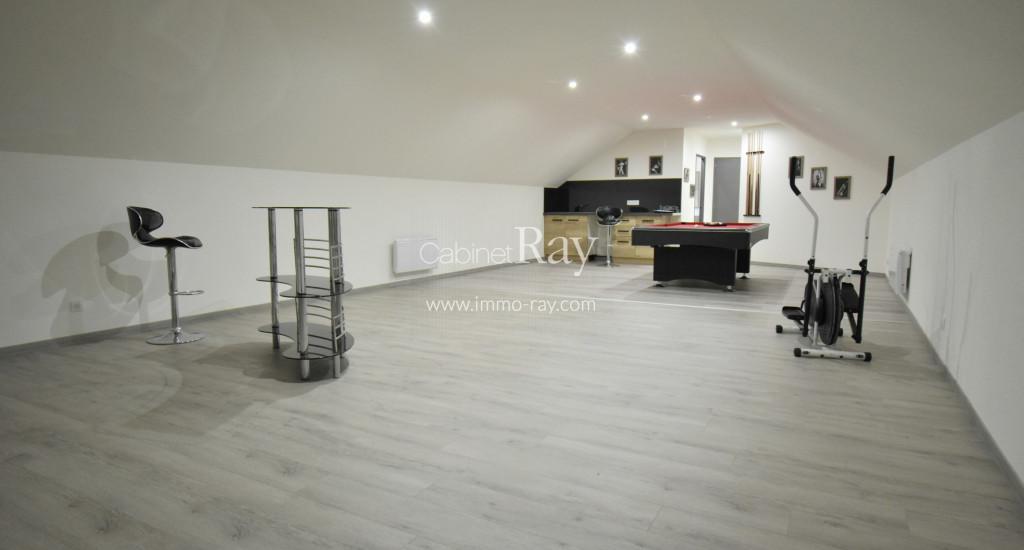 - Pièce à vivre 38 m² carrelée dont espace cuisine.