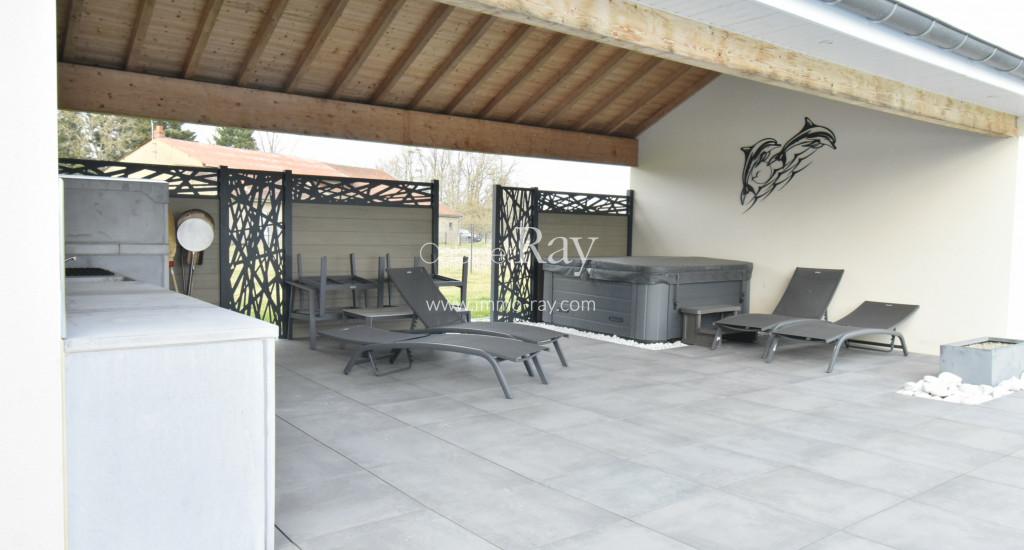 Demeure principale : accès par galerie Mâconnaise 60 m² environ – dalles Bourguignonnes.