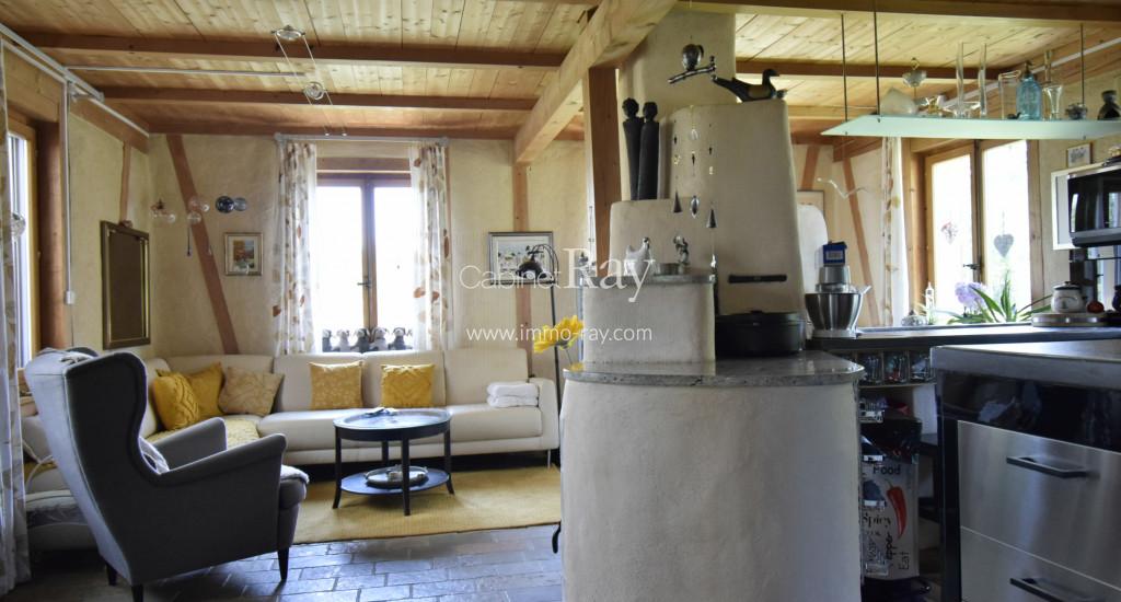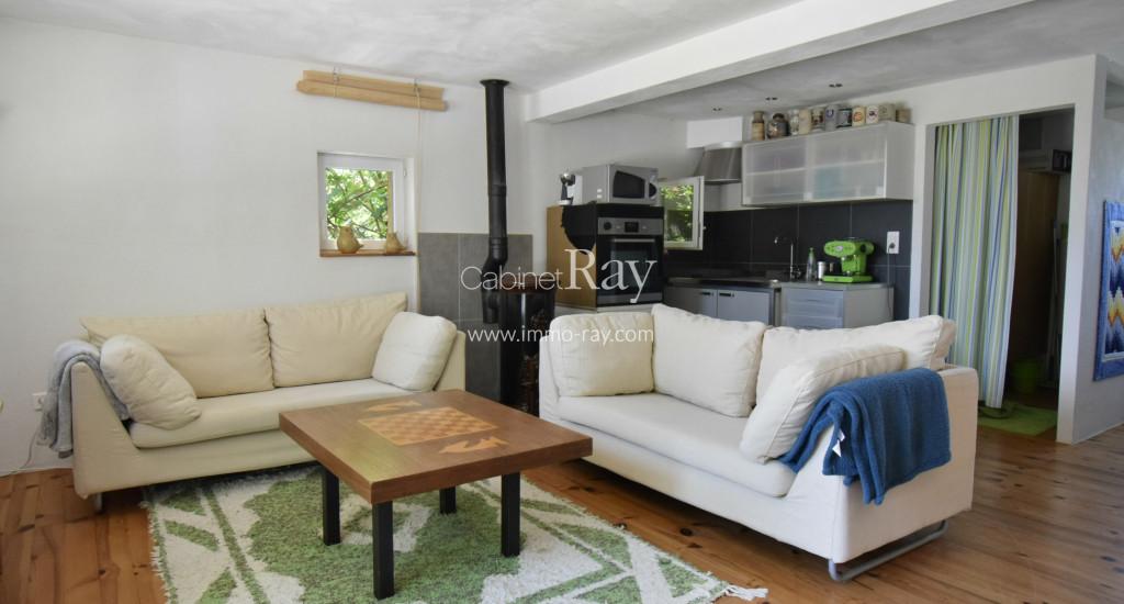 - Cuisine-séjour 32 m² parquet/pierre naturelle.