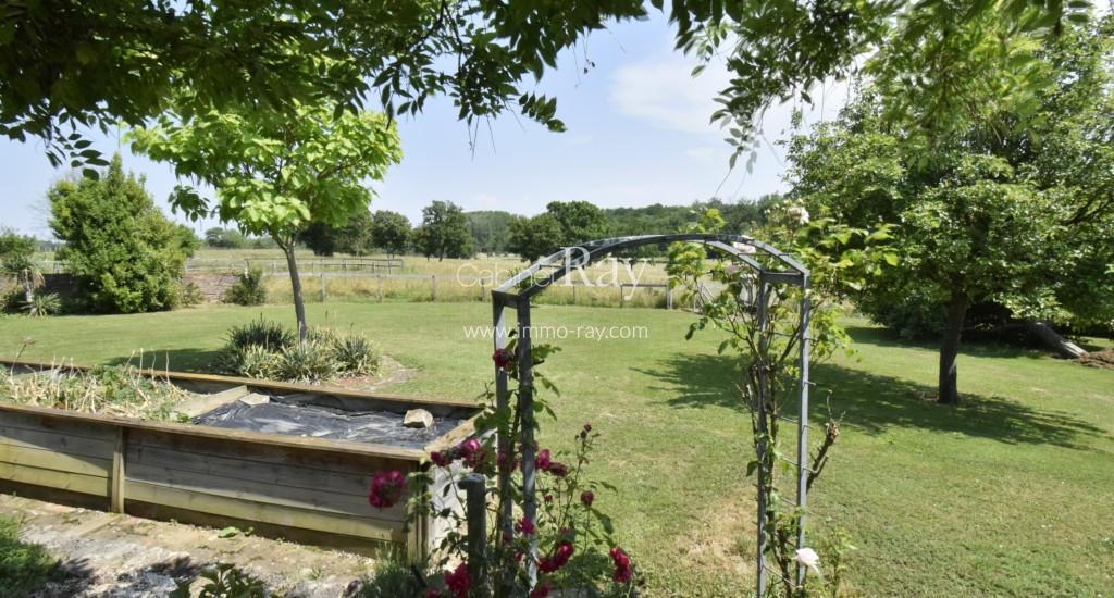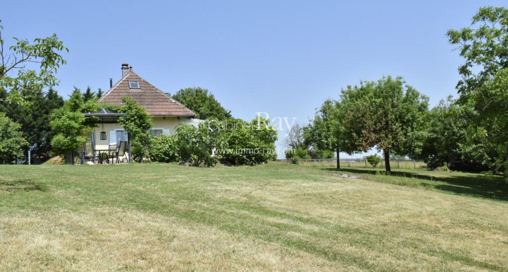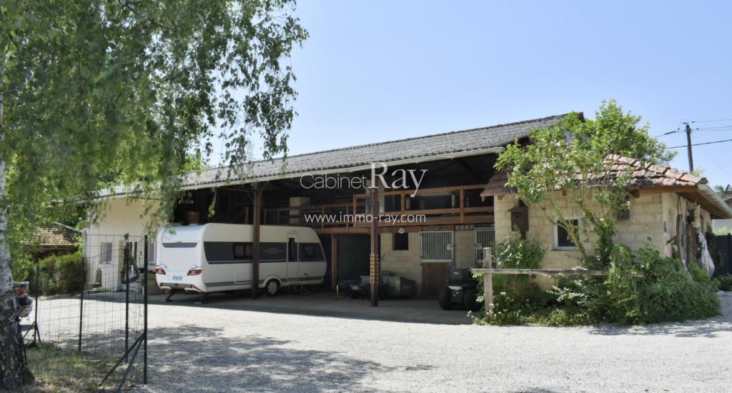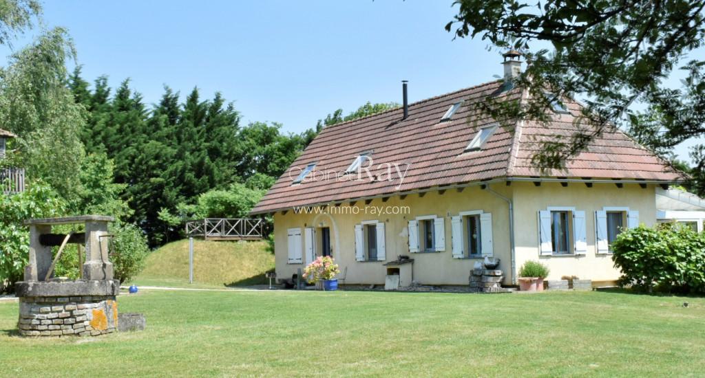 Une belle demeure Bressane origine 17ème composée d’une habitation 180 m² environ de plain-pied – dont 90 m² rénovés + étage même surface à aménager, dépendance séparée à rénover, puits, cour et terrain, le tout sur 3438 m² en bout de chemin.