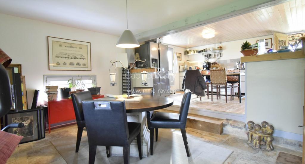 - Cuisine-séjour 40 m² carrelé – Eléments rangement – Poutres apparentes.