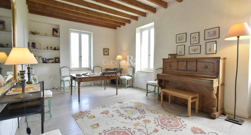 Une belle propriété origine 17ème composée d’un château 520 m² environ aménagé sur trois niveaux – 6 chambres + 4 salles de bains –, grand salon /home cinéma, terrasse couverte, grandes dépendances avec four à pain, sauna, jacuzzi extérieur, puits, cour et terrain, le tout sur un hectare environ clos de haies.
