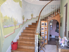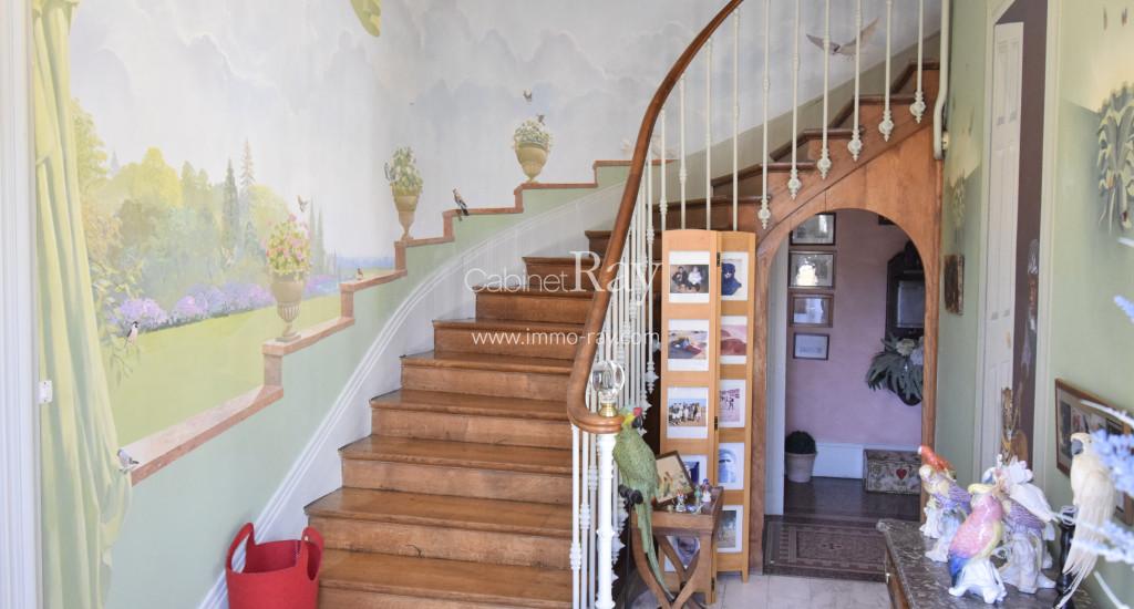 - Belle entrée carrelée avec wc – lave mains, montée d’escaliers et dégagement vitré.