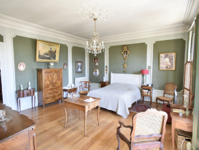 - Belle chambre 30 m² parquet avec salle de bains privative (Baignoire + douche + une vasque) et accès sur une terrasse extérieure avec belle vue sur les vignes environnantes.