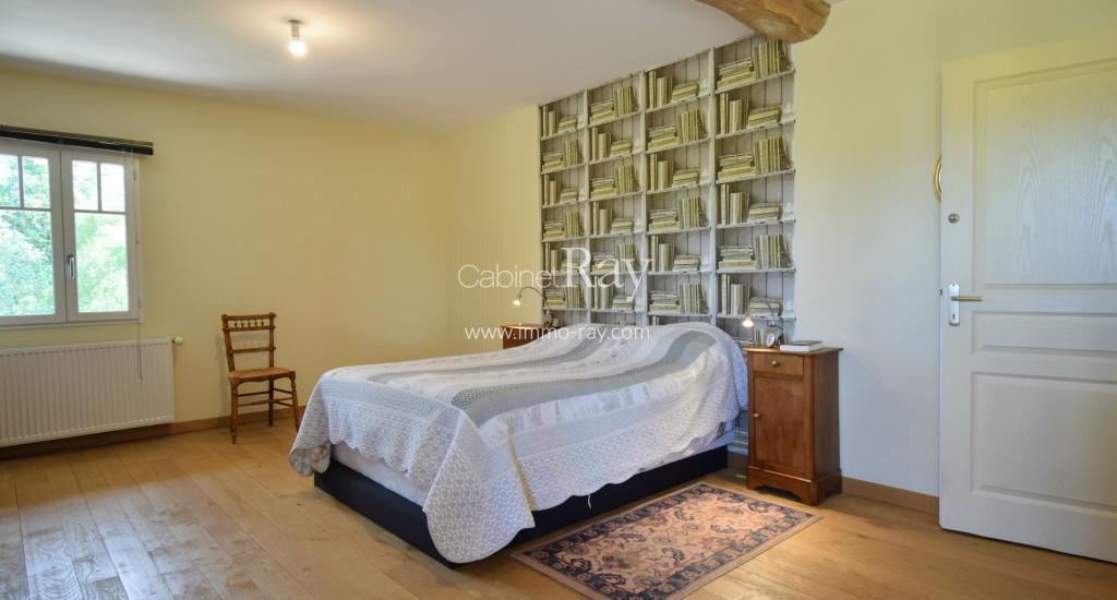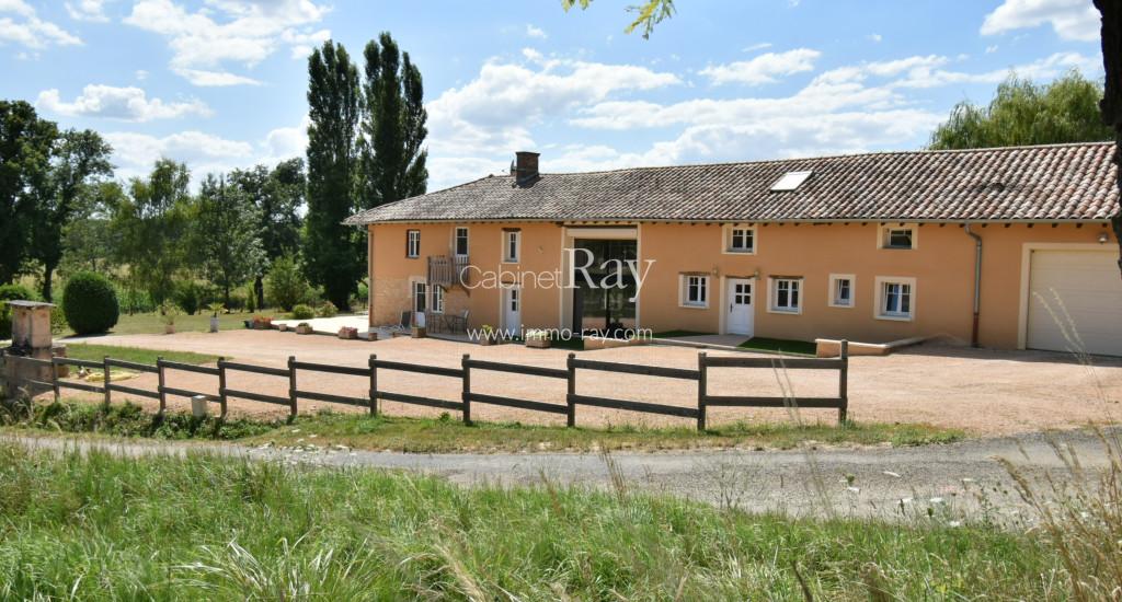 Une belle maison Bressane de construction « écologique » composée d’une demeure principale 140 m² environ – 4 chambres + 1 bureau - , gîte séparé 40 m², dépendance avec 2 boxes à chevaux, remises, cour, jardin, pré et plan d’eau, le tout sur 3 hectares environ.