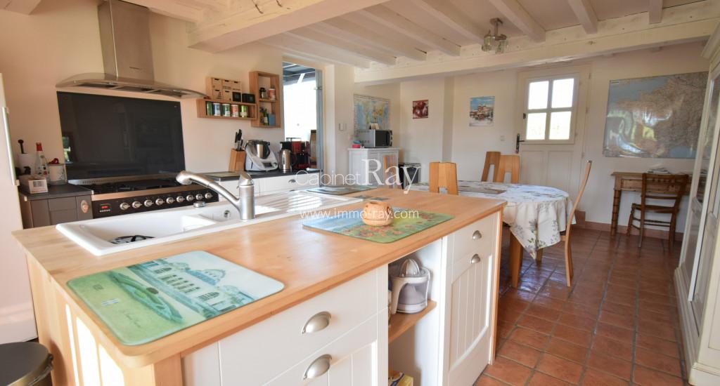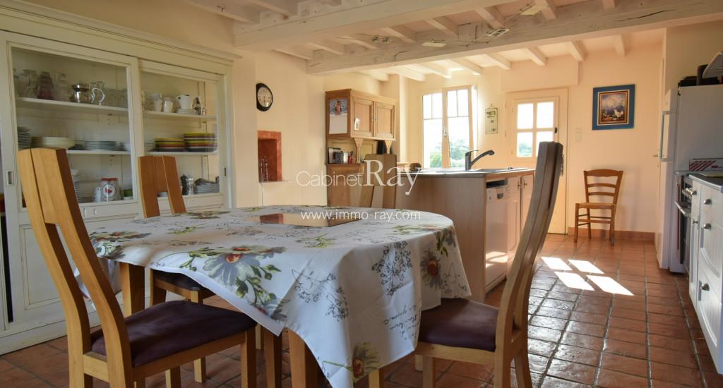 - Cuisine-séjour 40 m² carrelé – Eléments rangement – Poutres apparentes.
