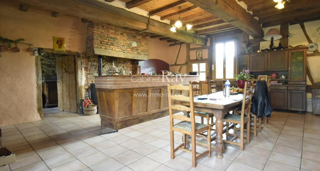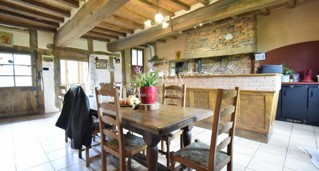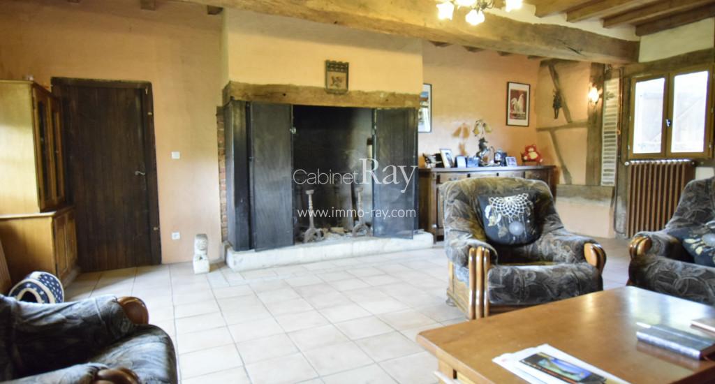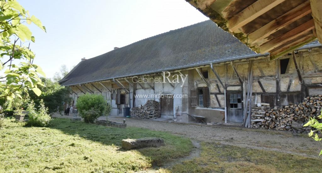 Une belle demeure Bressane origine 17ème composée d’une habitation 180 m² environ de plain-pied – dont 90 m² rénovés + étage même surface à aménager, dépendance séparée à rénover, puits, cour et terrain, le tout sur 3438 m² en bout de chemin.