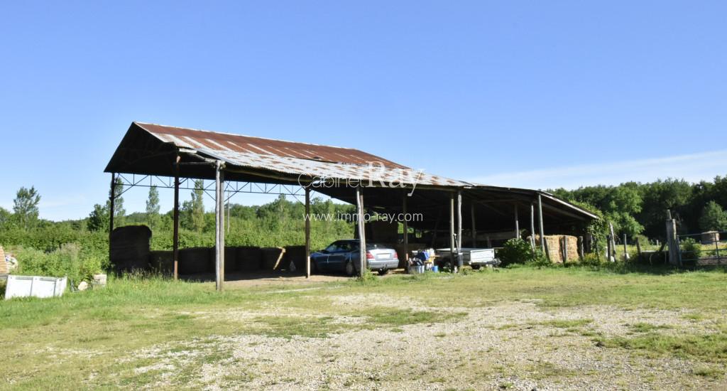- Bâtiment 160 m² avec abris bois + 2 boxes à chevaux + Atelier + Remises (couverture fibrociment).