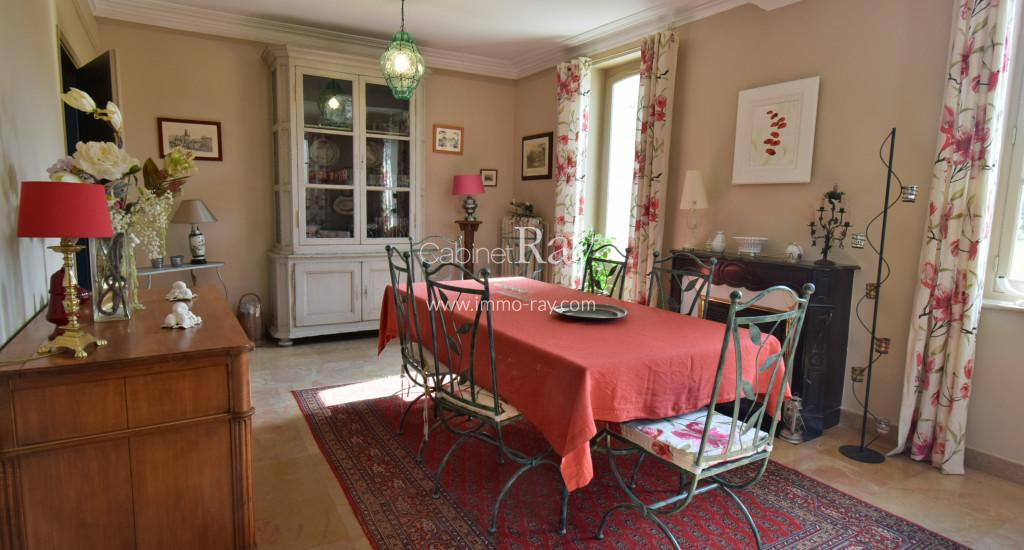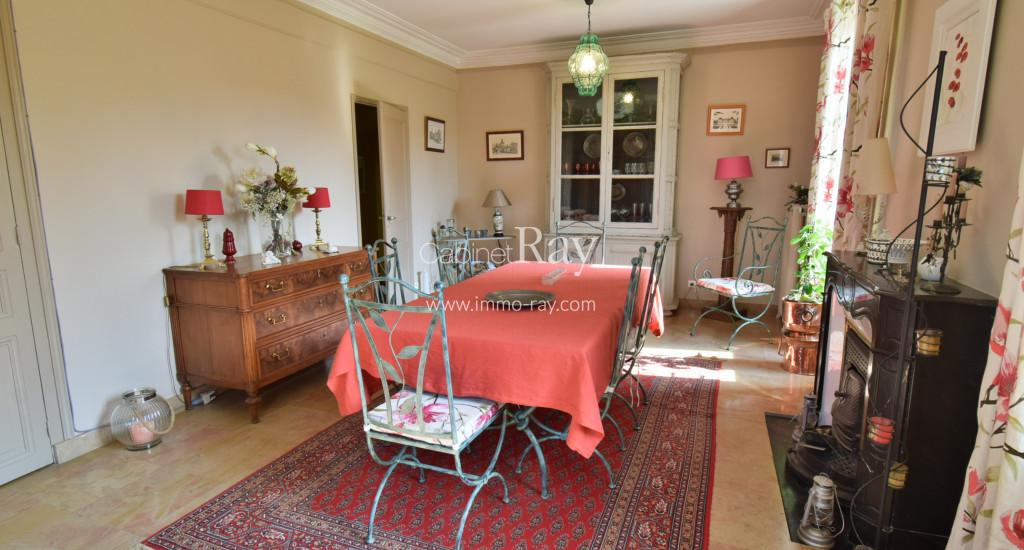 - Salon-séjour 40 m² tomettes – Cheminée foyer ouvert.