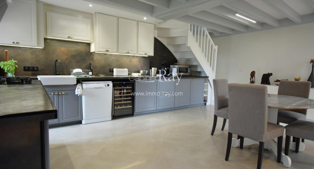 - Cuisine 14 m² carrelée – Poutres apparentes.