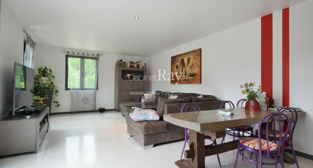 - Salon-séjour 50 m² - Pierre naturelle – Poutres apparentes – Cheminée système polyflam.
