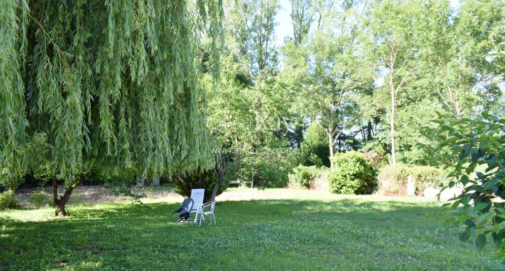 Piscine 9 x 4,5 m² liner- changé 2007/2008 (PVC armé) – Chlore + filtre à sable – Pompe changée en 2020 – Rideau de sécurité.