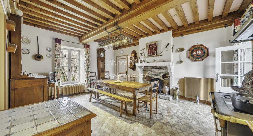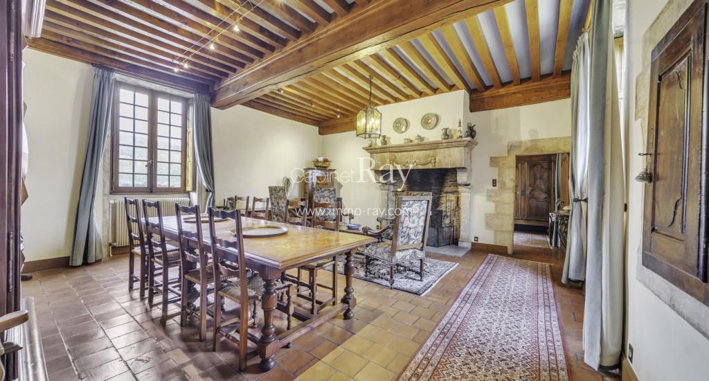 - Salle à manger 22 m² dalles Bourgogne – Poutres apparentes.