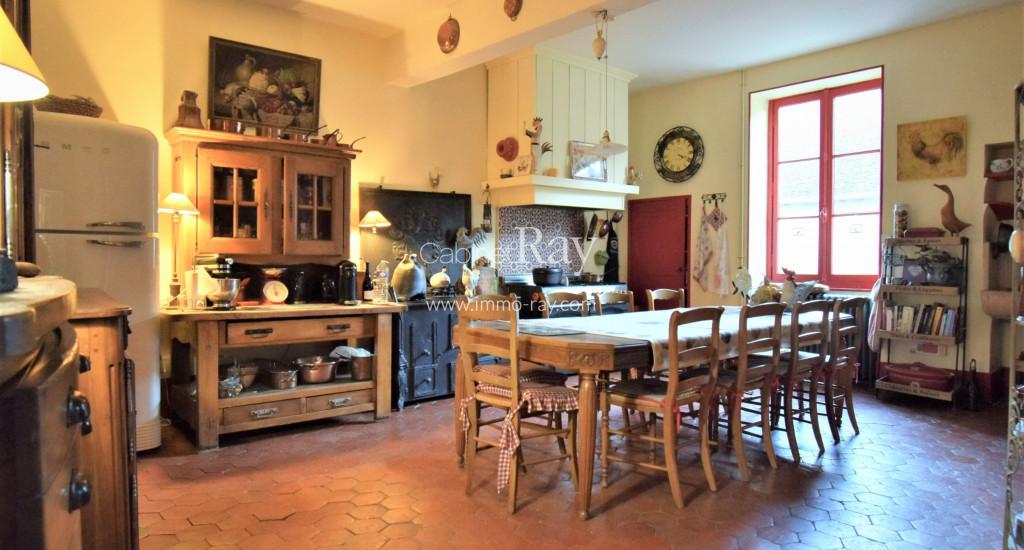 - Cuisine 40 m² carrelée toute équipée. Cheminée communicante insert.