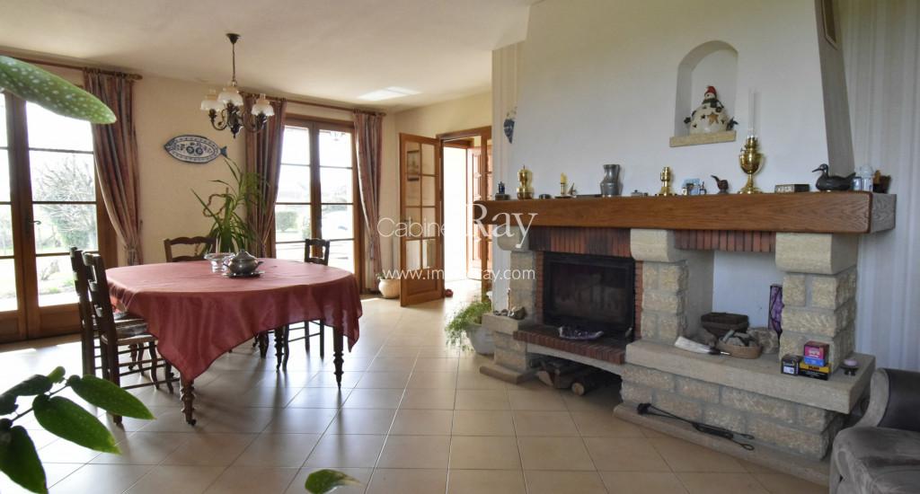 Une agréable maison de campagne composée d’une habitation 160 m² environ – 5 chambres + 2 salles de bains + wc séparés-, combles, garage, petite dépendance séparée, puits, cour et beau terrain, le tout sur 5000 m² environ.