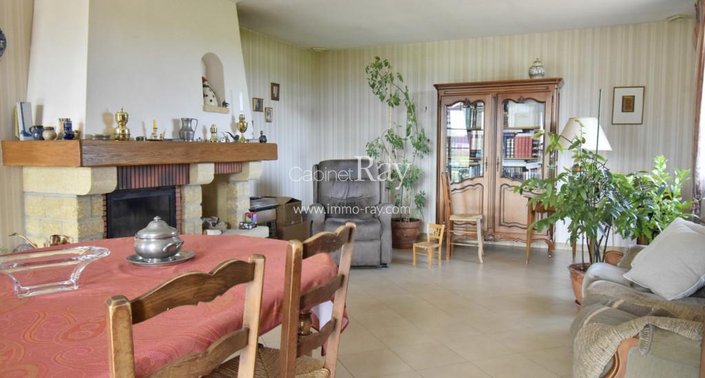 - Salon 30 m² pierre de Chassagne – Cheminée foyer ouvert.