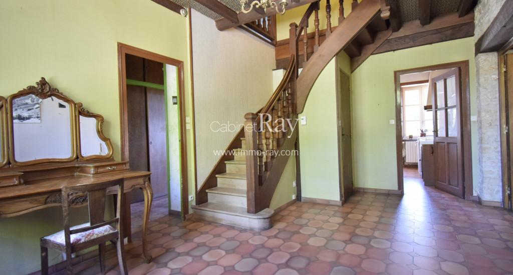 - Entrée carrelée – montée escalier + wc – lave-mains.