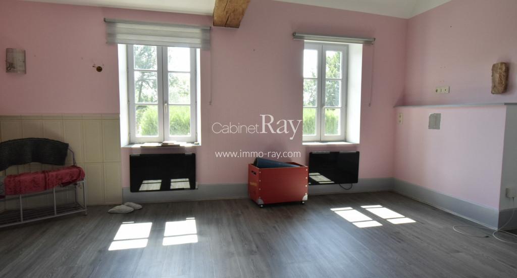 Une belle Propriété de caractère comprenant une demeure principale 350 m² environ – 8 chambres + 3 salles de bains-, sous-sol complet, bâtiment séparé avec 2 appartements 100 et 150 m², bâtiment annexe avec logement de gardien + grange et écurie de chevaux, pigeonnier, tour, piscine, tennis, ancienne chapelle à rénover totalement, cour, parc et prés, le tout sur 5,5 hectares environ d’un seul tenant, dont 4 hectares loués.