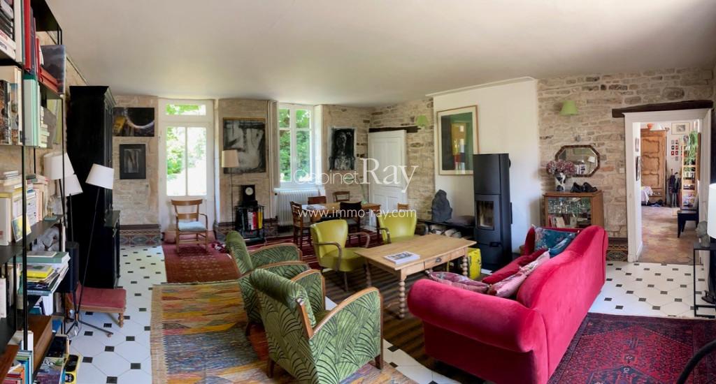 - Pièce à vivre 75 m² parquet dont espace cuisine toute équipée – Accès terrasse et jardin.