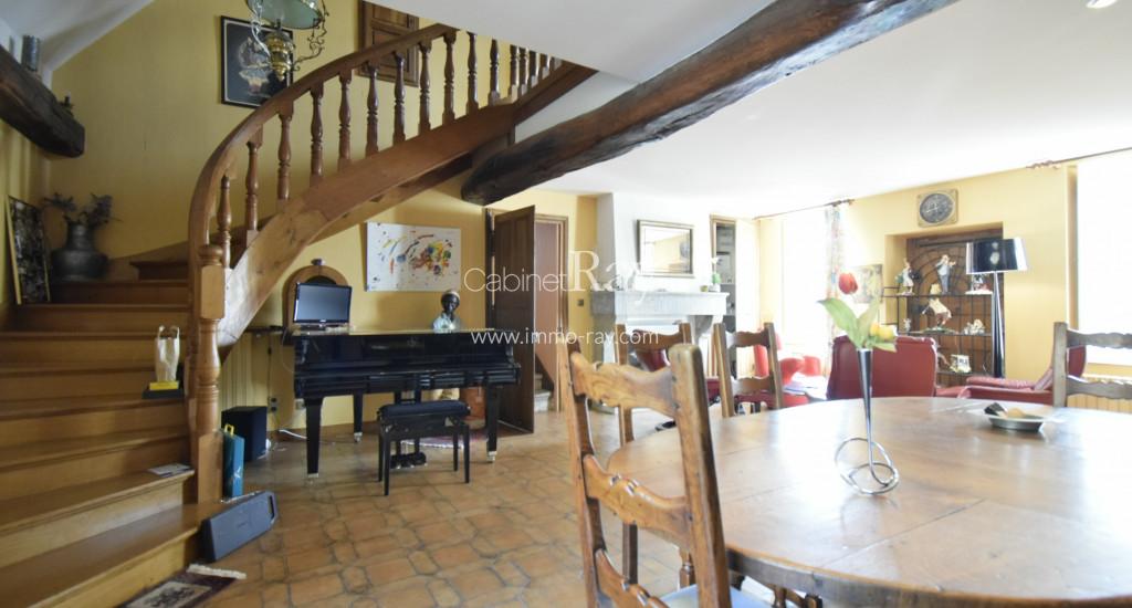 - Salon-séjour 40 m² tomettes – Cheminée foyer ouvert.