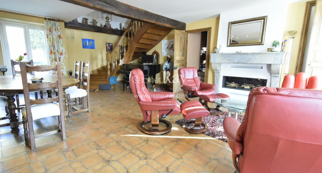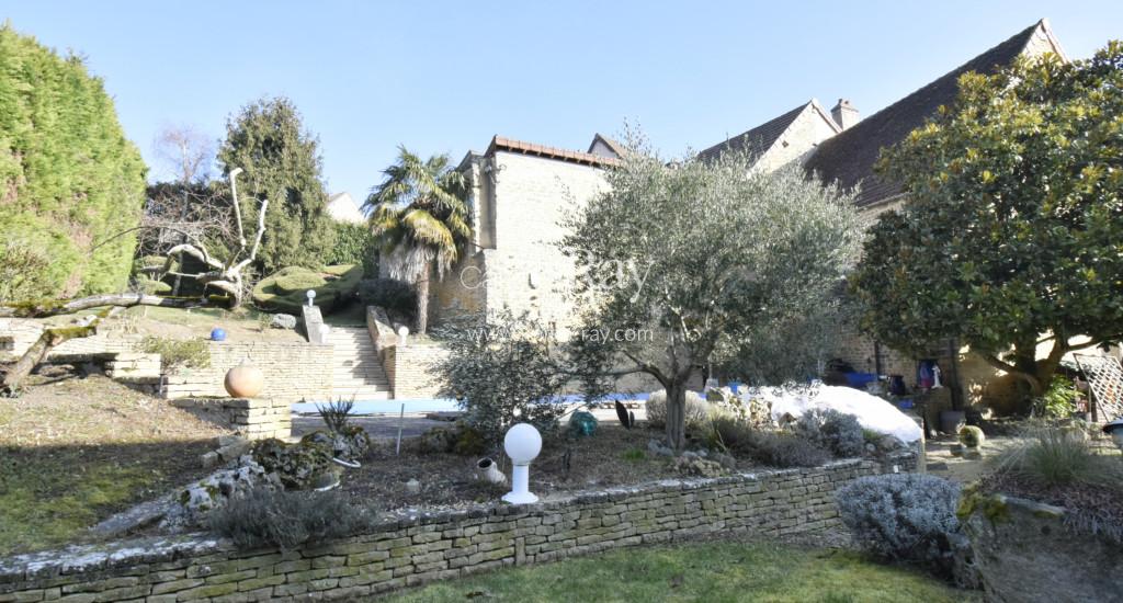 Une belle propriété composée d’une habitation 230 m² environ – 5 chambres + 2 salles de bains – sous-sol complet, cave à vin, pièce de réception indépendante, petites dépendances, cour et parc, le tout sur 3000 m² environ clos et bien arborés.