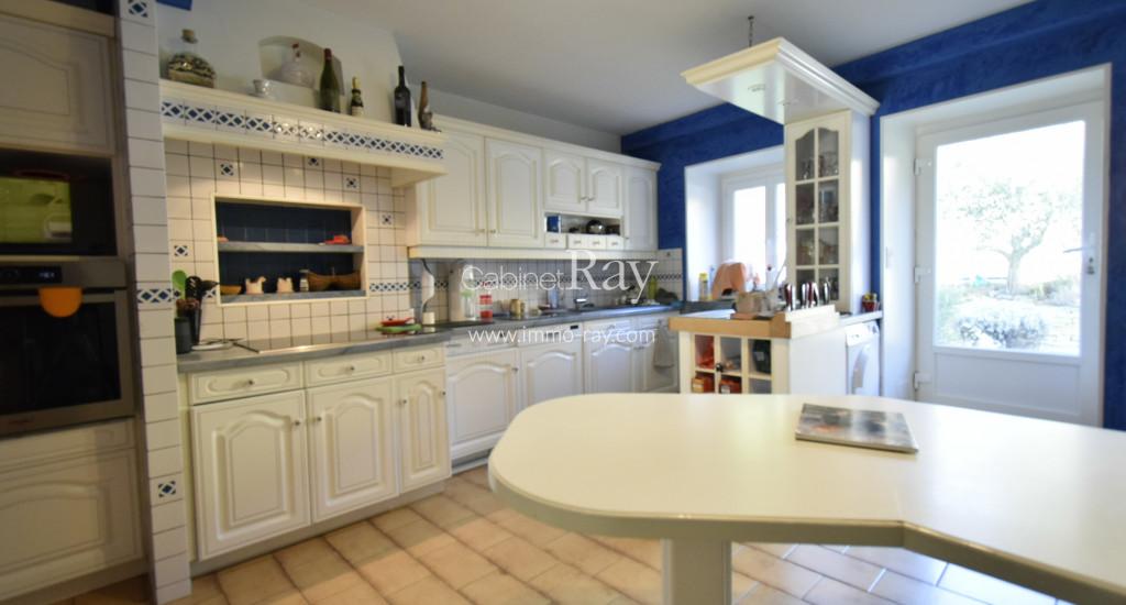 - Cuisine 40 m² carrelée toute équipée. Cheminée communicante insert.