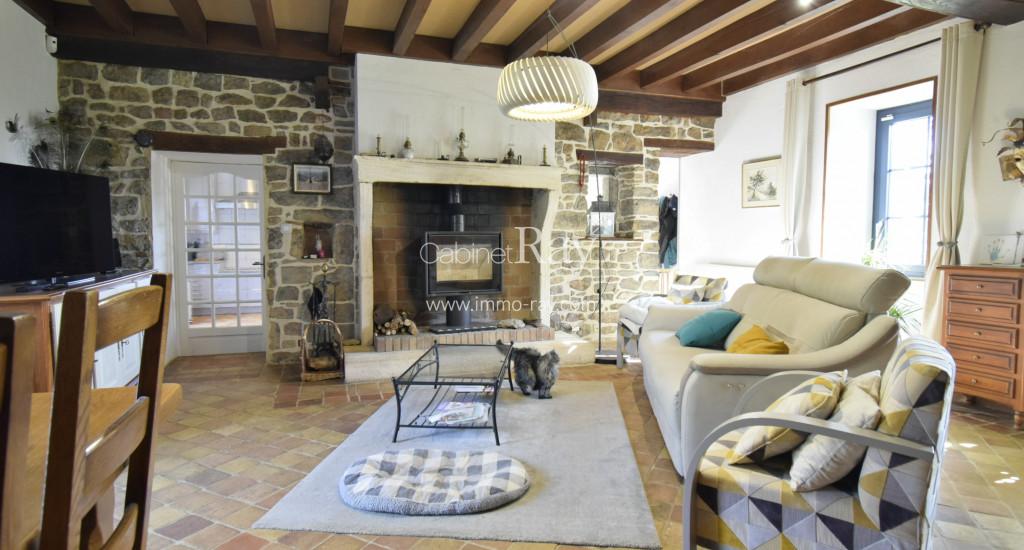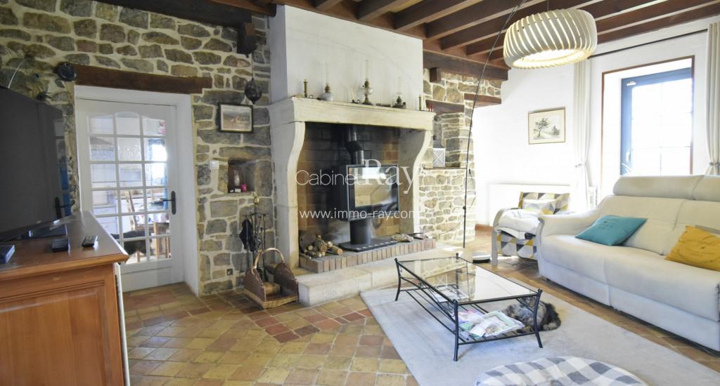 - Salon-séjour 40 m² tomettes – Cheminée foyer ouvert.