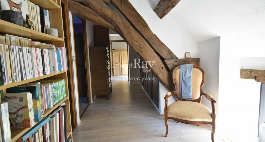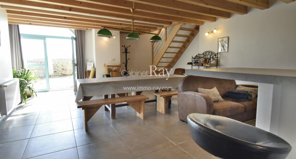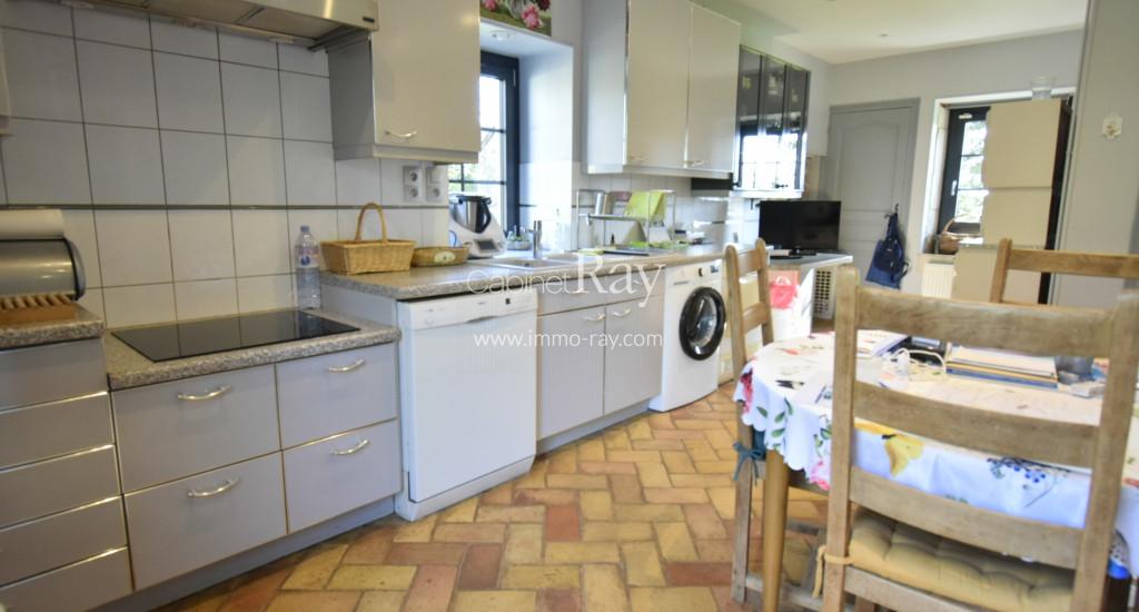 - Cuisine 40 m² carrelée toute équipée. Cheminée communicante insert.