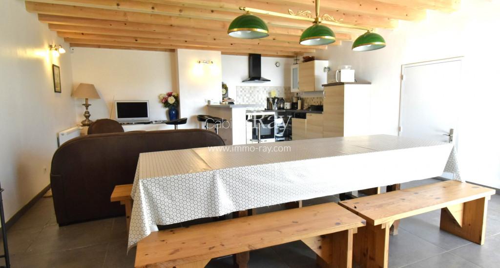 - Cuisine – séjour 28 m² carrelée équipée.