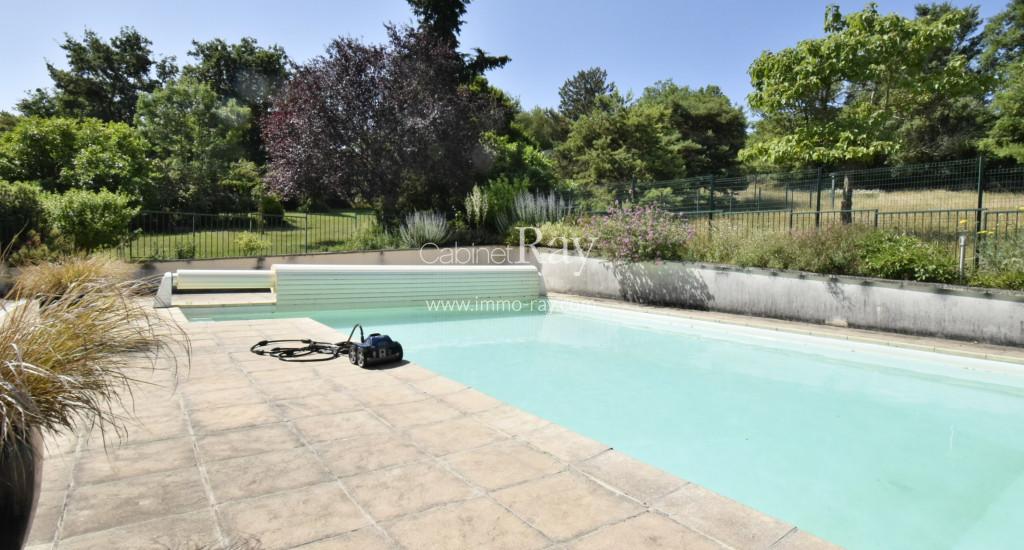 Une belle propriété composée d’une habitation 230 m² environ – 5 chambres + 2 salles de bains – sous-sol complet, cave à vin, pièce de réception indépendante, petites dépendances, cour et parc, le tout sur 3000 m² environ clos et bien arborés.