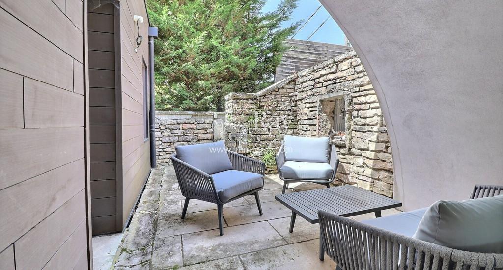-	Belle entrée 50 m² pierre de Bourgogne – wc.