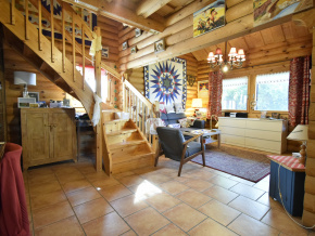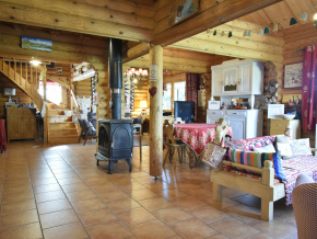 - Salon-séjour 50 m² - Pierre naturelle – Poutres apparentes – Cheminée système polyflam.