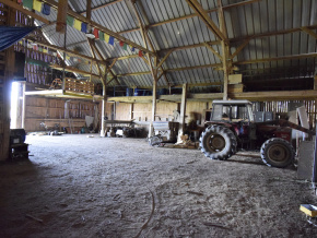 Une belle grange en pierre rénovée composée d’un logement principal 155 m² environ – 3 chambres + mezzanine usage salon –, atelier, remise, piscine hors-sol, cour et jardin, le tout sur 330 m² environ.
