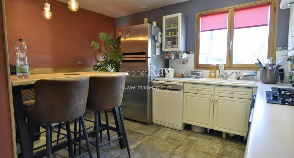 - Cuisine 12 m² carrelée – Eléments de rangement + électroménager.