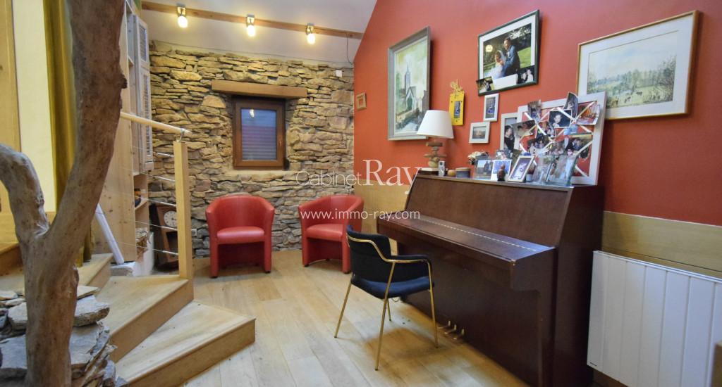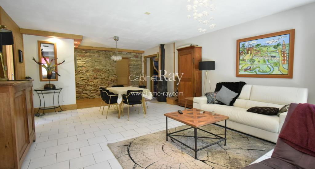 Une belle maison de village en pierre entièrement rénovée composée d’une habitation 165 m² environ – 3 chambres + 3 salles de bains - , garage, chaufferie, caves voutées, cour attenante et jardin séparé, le tout sur 500 m² environ.