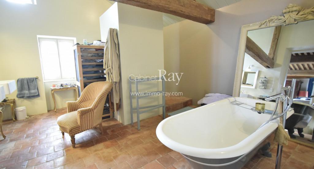 - Dégagement + salle de bains (baignoire + douche + 2 vasques) + wc séparés + dressing à la suite.