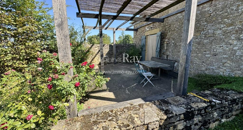 - Préau 35 m² pierres apparentes à usage de pièce de réception.