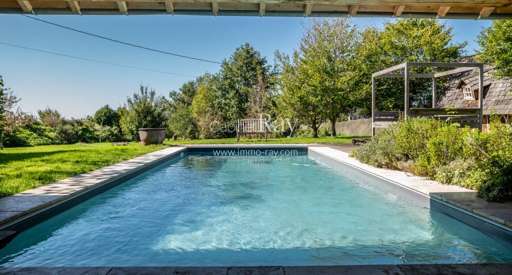 Piscine traditionnelle 5 x 10 – Liner changé en 2022- Sel – Chauffée PAC. Terrain de tennis en bout de propriété.