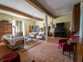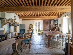 - Salon 57 m² tomettes – Plafond à la Française – Cheminée + poêle à bois.