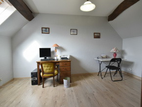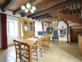 - Salon 27 m² tomettes – Poutres apparentes – Cheminée + poêle à bois.